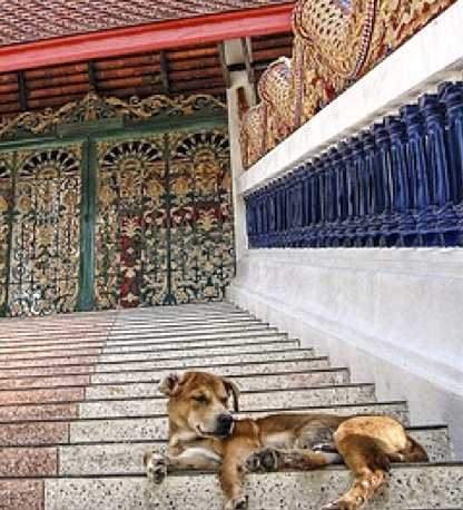En la cultura y creencia tailandesa, todos los seres que viven bajo el mismo sol merecen el mismo respeto. Las especies no importan. Ellos aman a sus mascotas y cuando llegan a la edad de morir, algunos tailandeses los llevan al templo local para que puedan morir en paz, en compañía de los monjes y cerca de Buda. Por eso siempre hay muchos perros alrededor de los templos, y a veces es un problema real. Los templos son pobres. Un monje posee sólo siete artículos. Los vecinos cocinan para ellos y para los perros por la mañana antes de ir a trabajar.